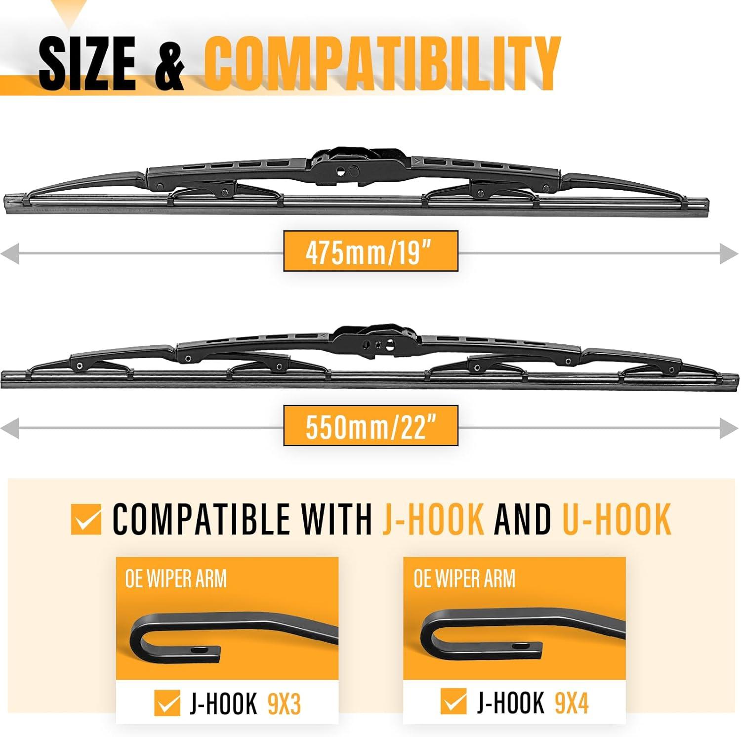AUTOBOO 22"+19" Windshield Wiper Blade Sets Replacement for 04-07 Saturn lon,Cadillac CTS 13-08 GMC Canyon 2012-2004 Toyota RAV4 2005-2001 Highland 2007-2001-Original Factory Quality (Pack of 2)
