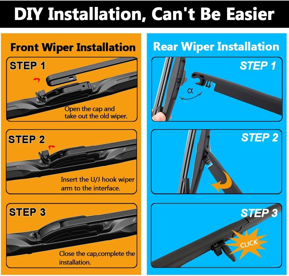 【FITMENT】Replacement for NISSAN ROGUE rear and front windshield wiper blade 2014 2015 2016 2017 2018 2019 2020 2021 2022 2023.