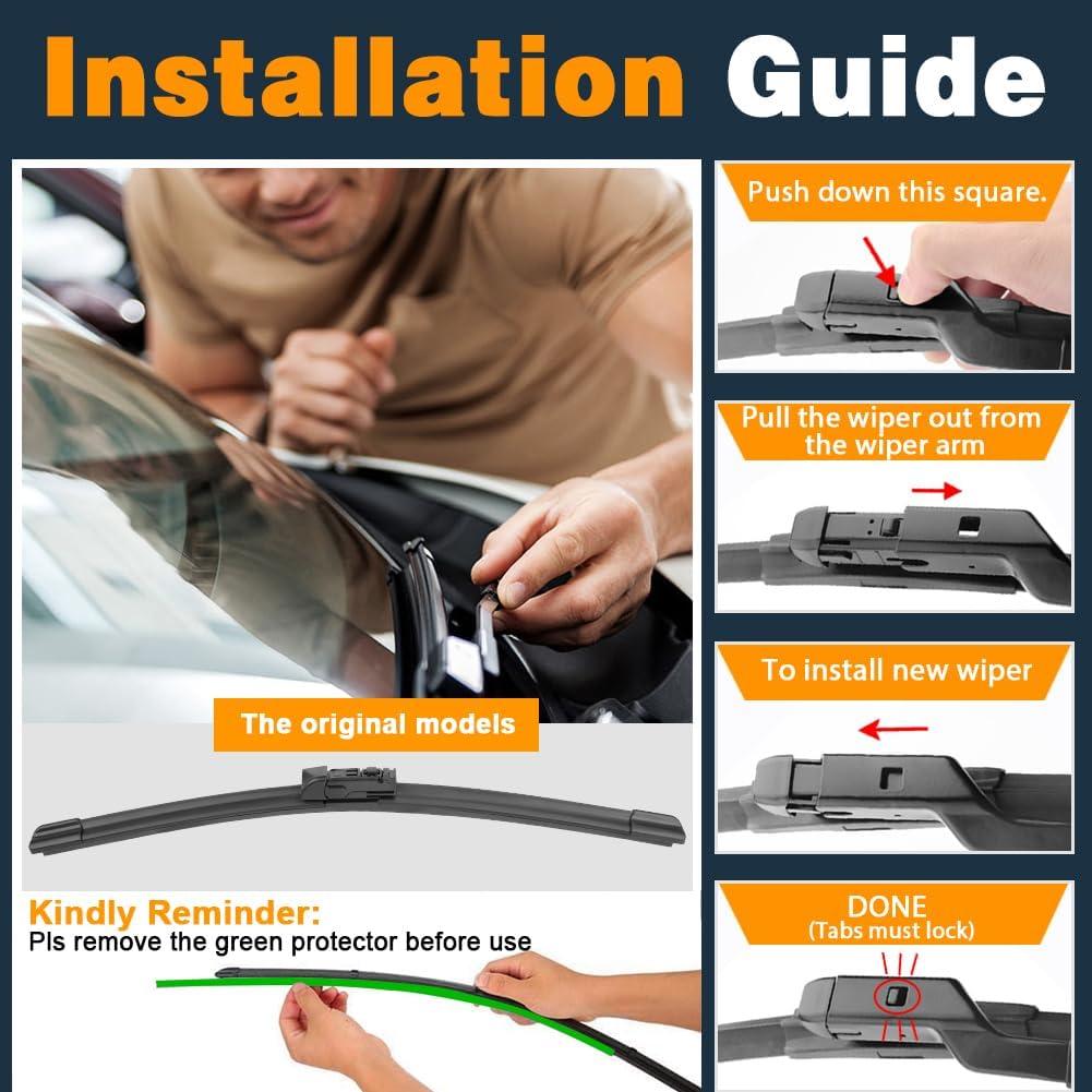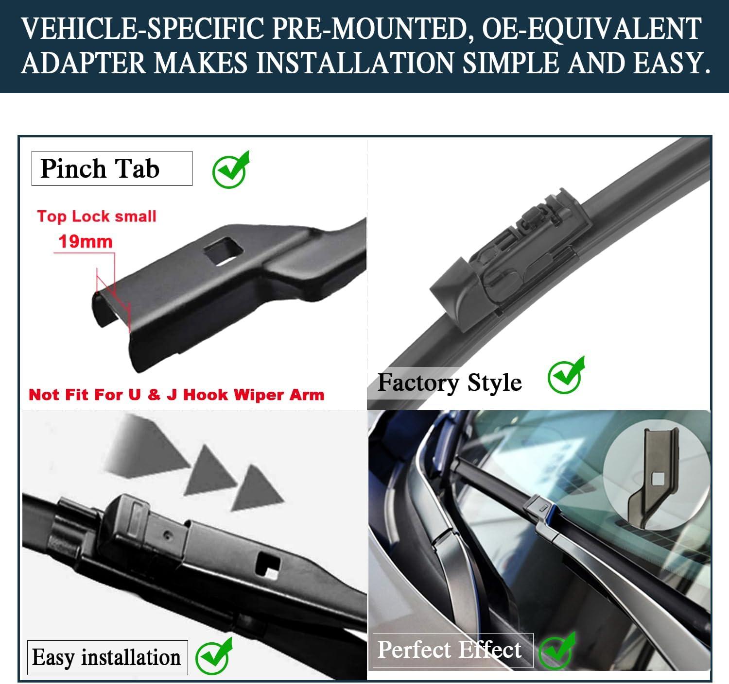 【EASY-TO-INSTALL】 Quick and easy to install. fit perfect to your car, like the original parts. It’s installed to the wiper arm by Top Lock.